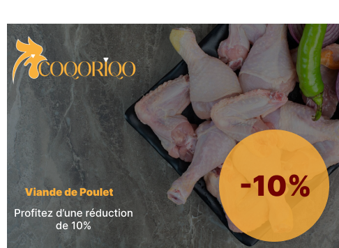 Economiser jusqu'a 10% Profitez d'une réduction de 10% sur Coqoriqo, votre site de vente de viande de poulet et de charcuterie de qualité.
